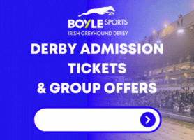 Tickets are on sale now for the 2025 BOYLE Sports Irish Greyhound Derby Final on Staurday 27th September.