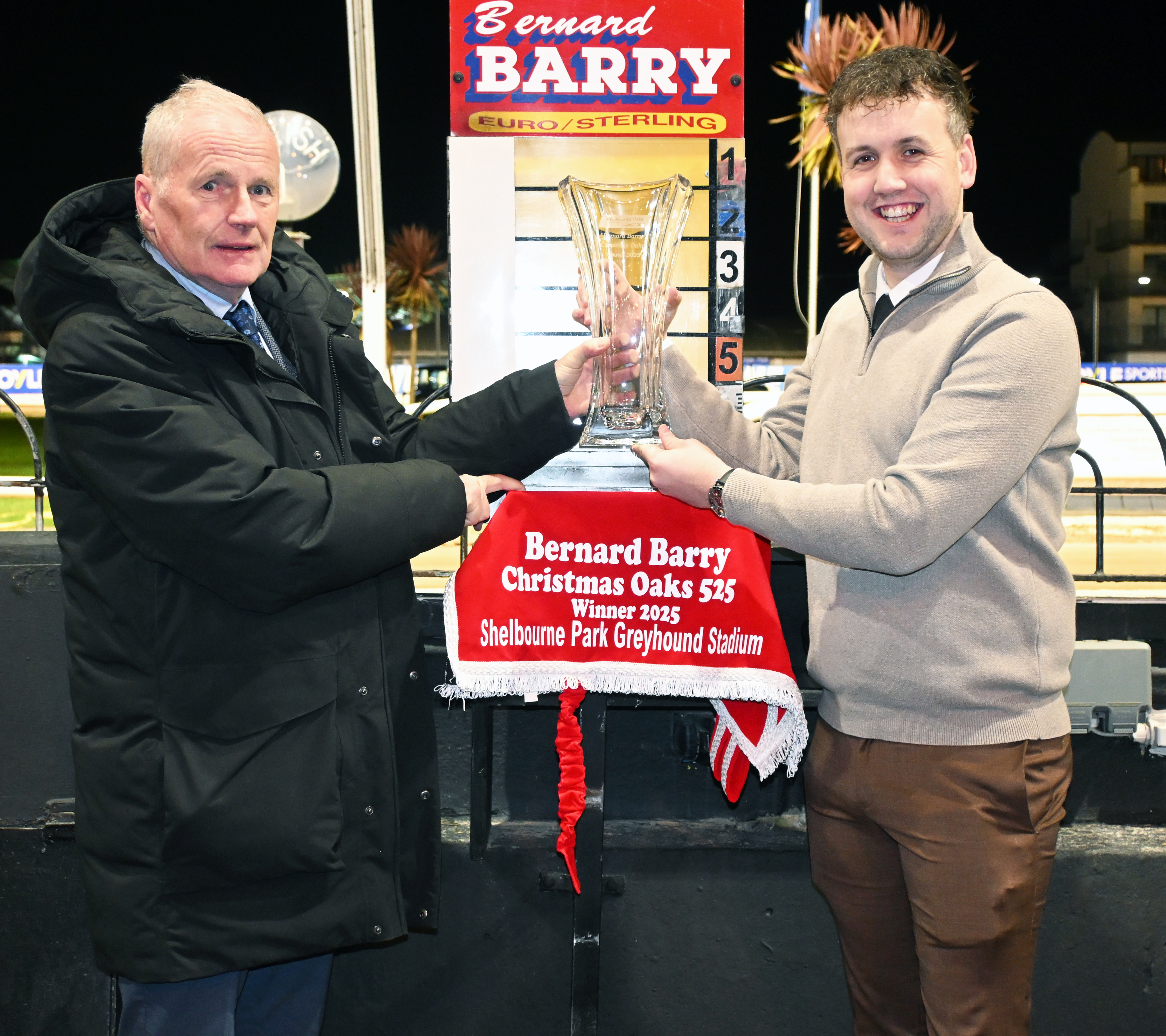 The Bernard Barry Christmas Oaks, sponsored by Shelbourne Park bookmaker Bernard Barry, is set to return this festive season, with racing taking place from 6th December and the Final on Saturday, 27th December.