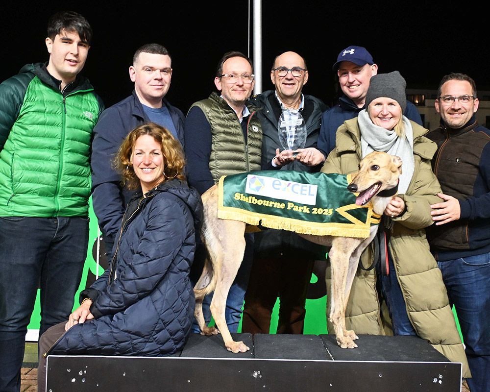 set a strong standard in the semi-finals of the Shelbourne Park Opens AA0 525, bouncing from traps to dominate in the second heat.