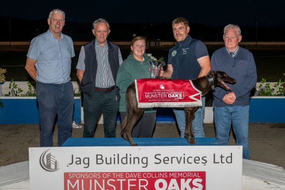 Badly Behaving lit up Kilcohan Park on Saturday night with a brilliant display of early pace to capture the €5,000 Dave Collins Memorial Munster Oaks Final.