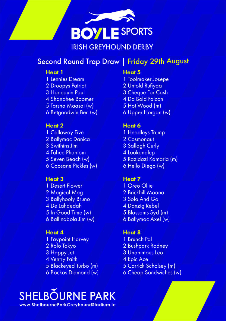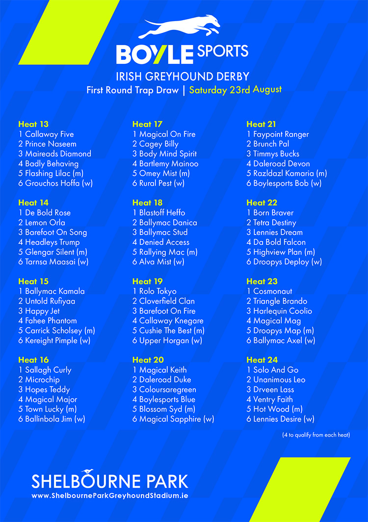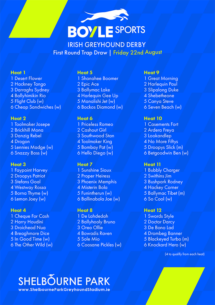 BOYLE SPORTS IRISH GREYHOUND DERBY – OPENING ROUND DRAW