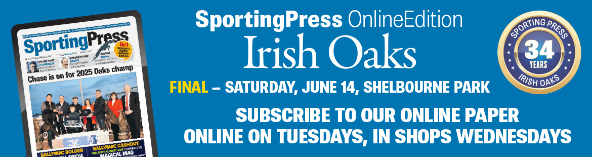 Be sure to pick up a copy of the Sporting Press in store each Wednesday or online from 8pm on Tuesday night on www.SportingPress.ie for all the latest Oaks and Greyhound Racing News.