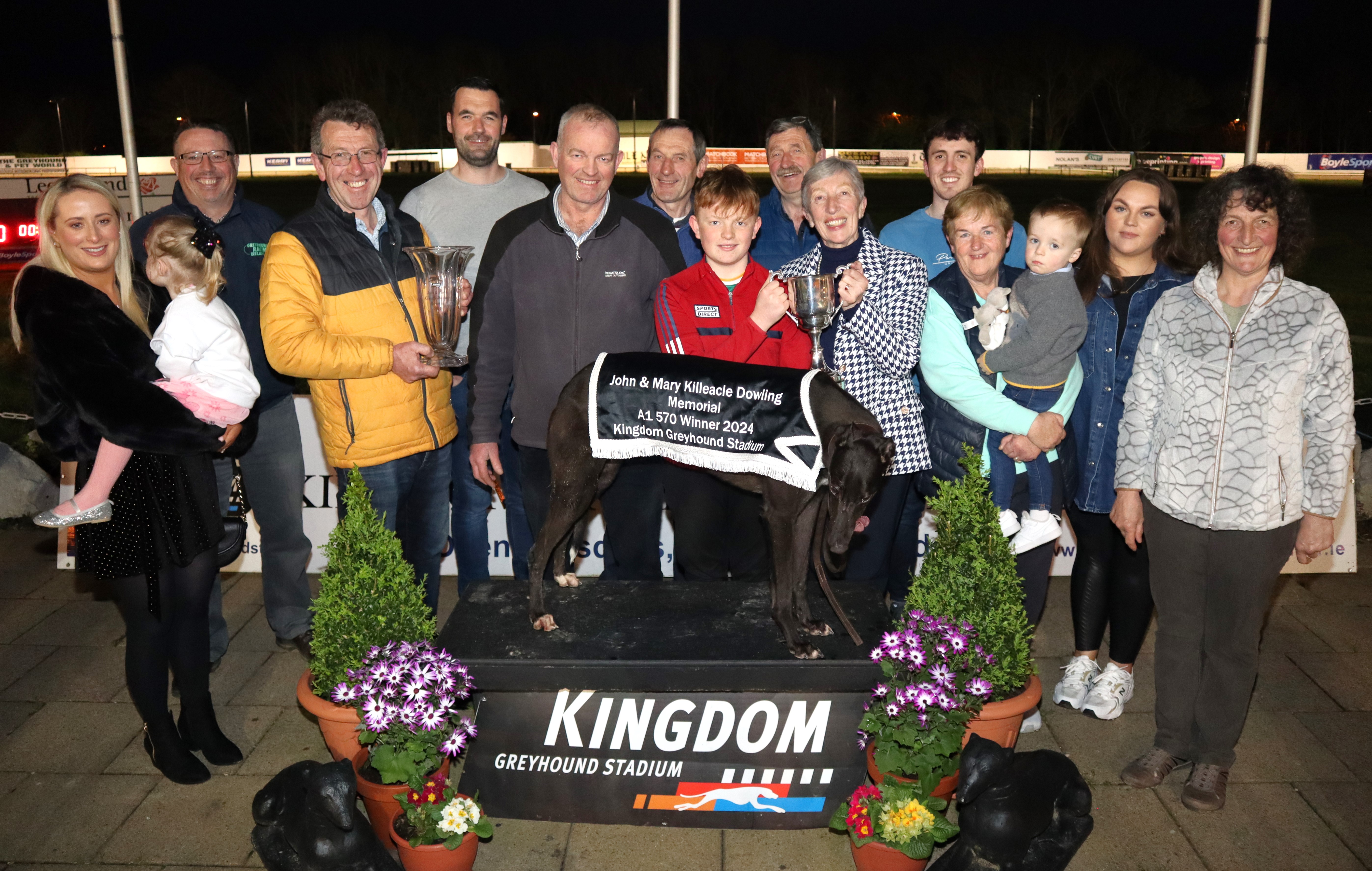 Following Millridge Bryce's win in the final of the John & Mary Killeacle Dowling Memorial Final, Angela Dowling making the winning presentation of the perpetual cup to Ryan Daniel O'Mahony & Declan Dowling presenting to Donal G.O'Mahony, with members of the Dowling family.