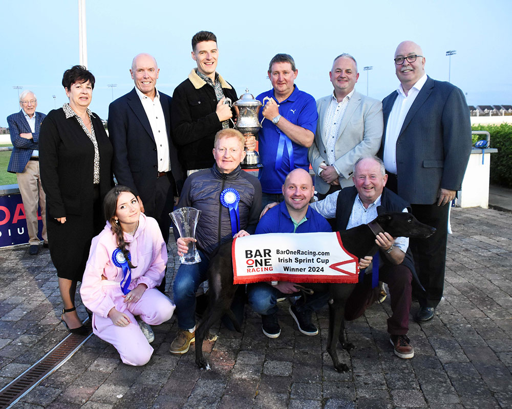 Representing Michelle and Kevin Carberry, the son of Good News never really gave his rivals a chance. Once squeezing around the turn in front, he was relentless on the bunny and went on to capture the €3,000 prize, holding Neon Blue by a length and three quarters in 28.58.