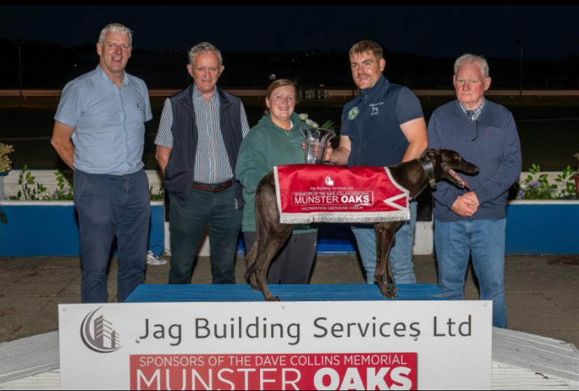 It was all about BADLY BEHAVING (Ballymac Cashout-Ballymac Cams) in the final of the €5,000 to the winner Dave Collins Memorial Munster Oaks at Kilcohan Park on Saturday night.