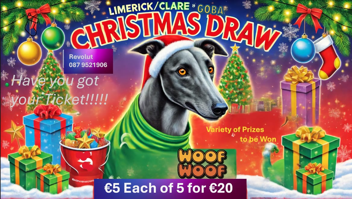The fundraising draw is due to be held during racing on Saturday, 21st December, and the prizes includes two festive meat hampers, as well as a variety of vouchers and much more. It would be very much appreciated if patrons would get behind the Christmas draw and anyone wishing to avail of a ticket can reach out to any member of the Limerick & Clare GOBA. There is also a Revolut number noted in the image below for payment of tickets.
