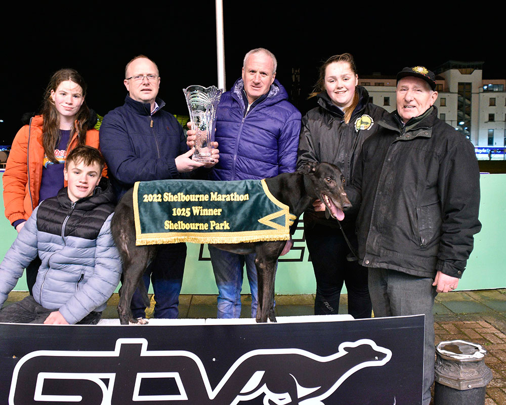 Michael Lynch’s Garfiney Legend displayed great battling qualities and plenty of reserves of stamina at Shelbourne Park on Saturday night to be crowned the 2022 Shelbourne Marathon champion.
