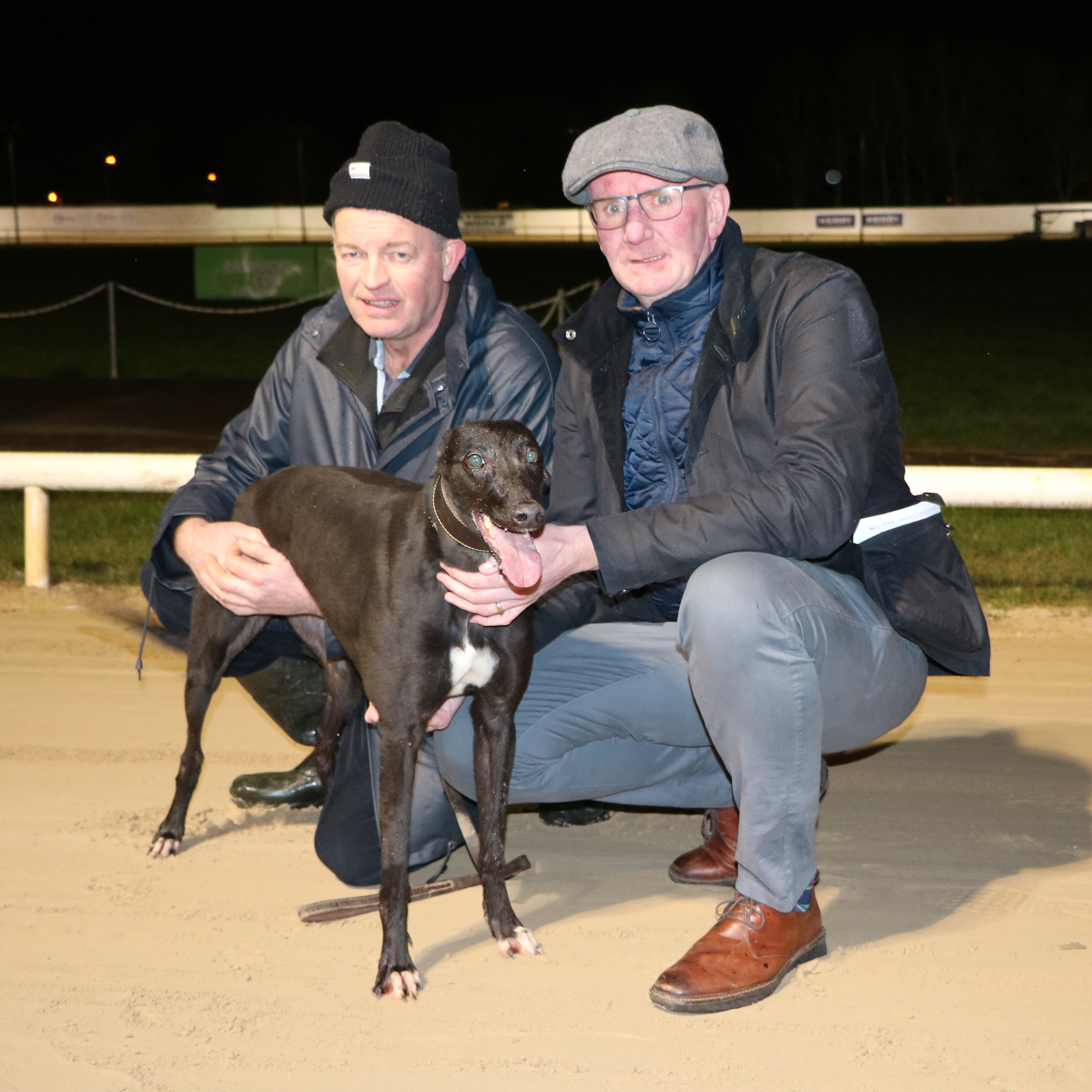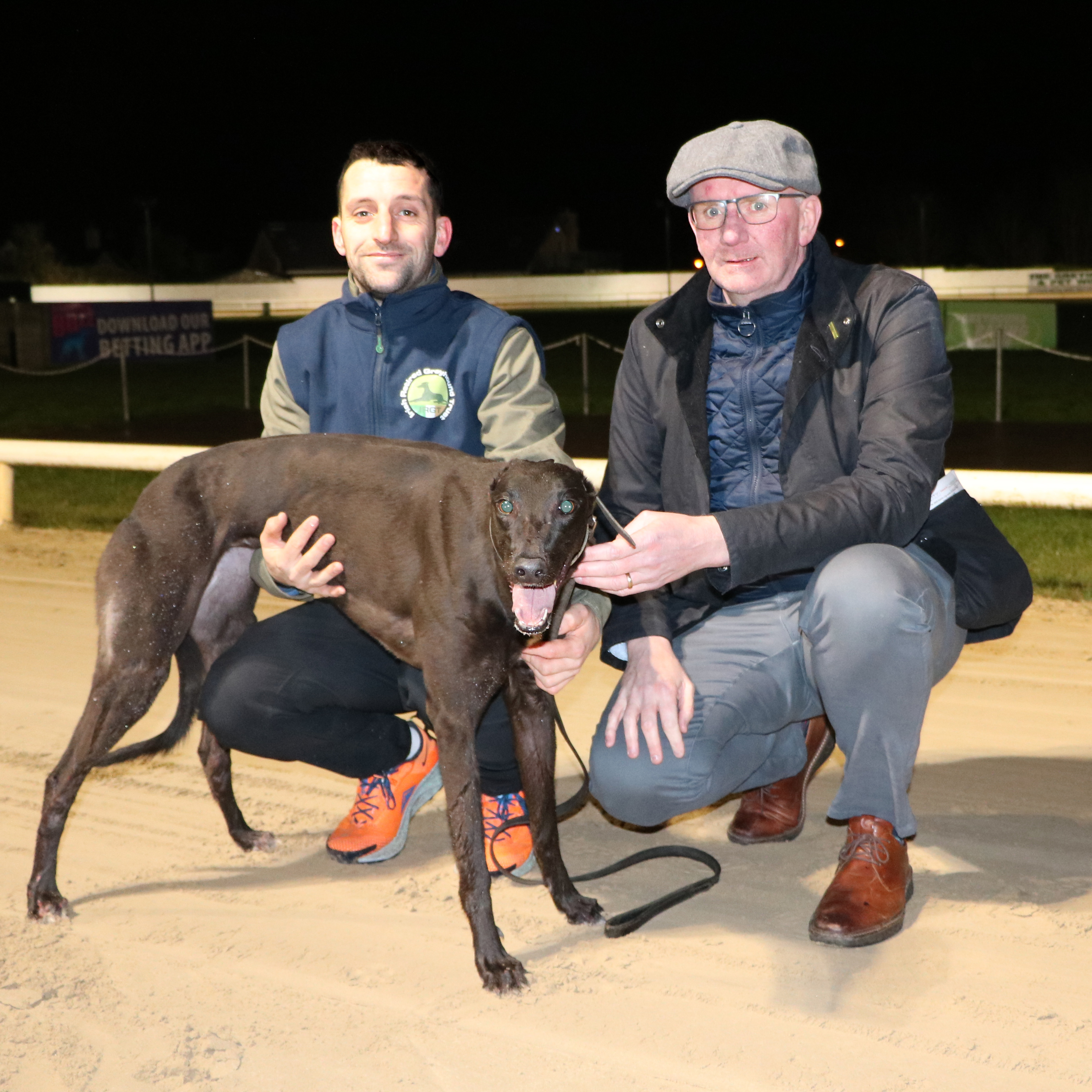 BALLYMAC WENDY was the star of the show when going quickest in the second heat. Liam Dowling’s lady drove a fantastic opening two corners and once hitting the front, it was all one way up front as the exciting June puppy pulled right away for an impressive display. A 29.38 winning run, seven lengths clear of Charlie And Ben. (0.100 slow).