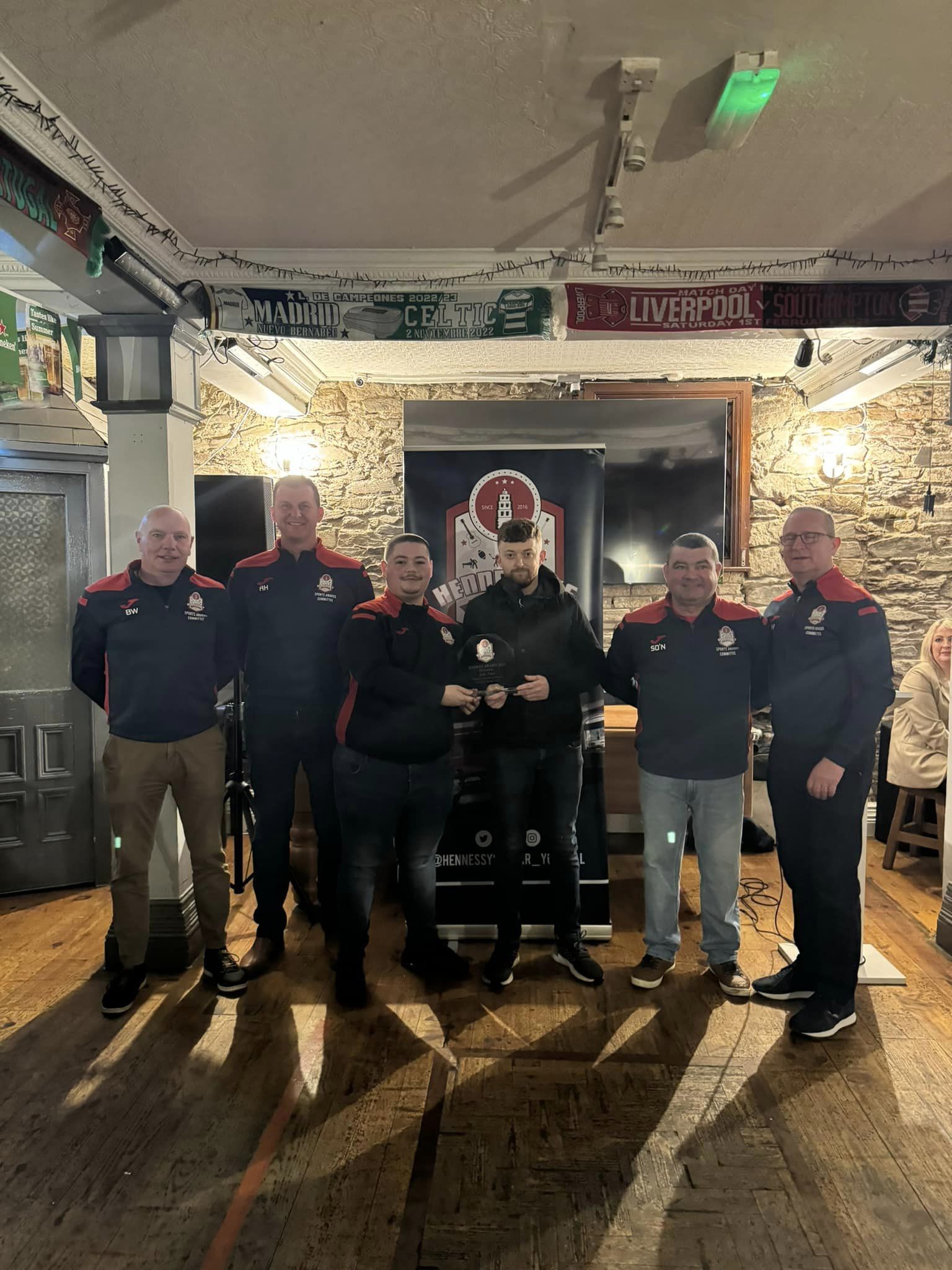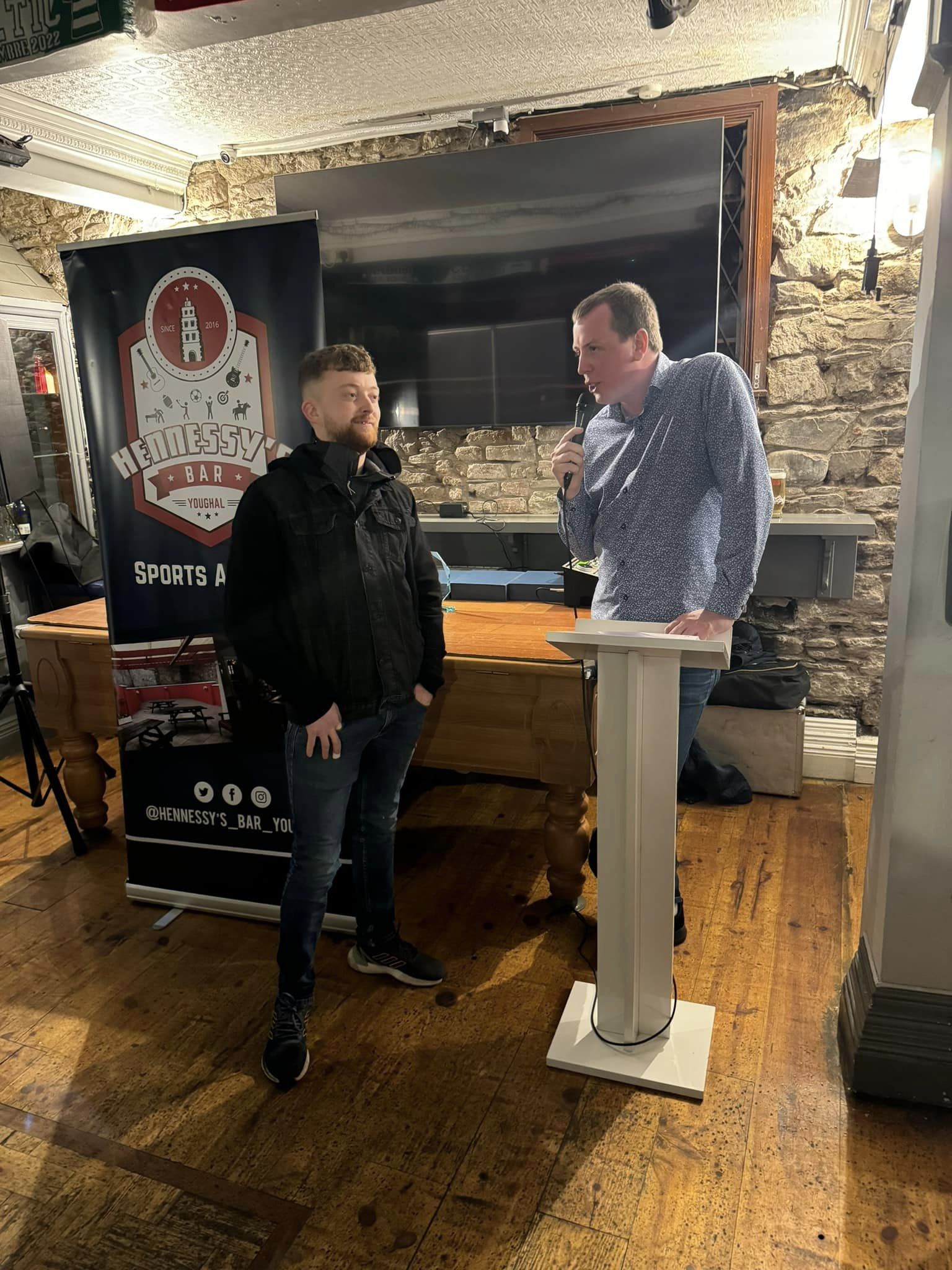 Image left: Jake Faul picking up his December Hennessy's Bar Sports Person of the month at Hennessy's Bar recently.
