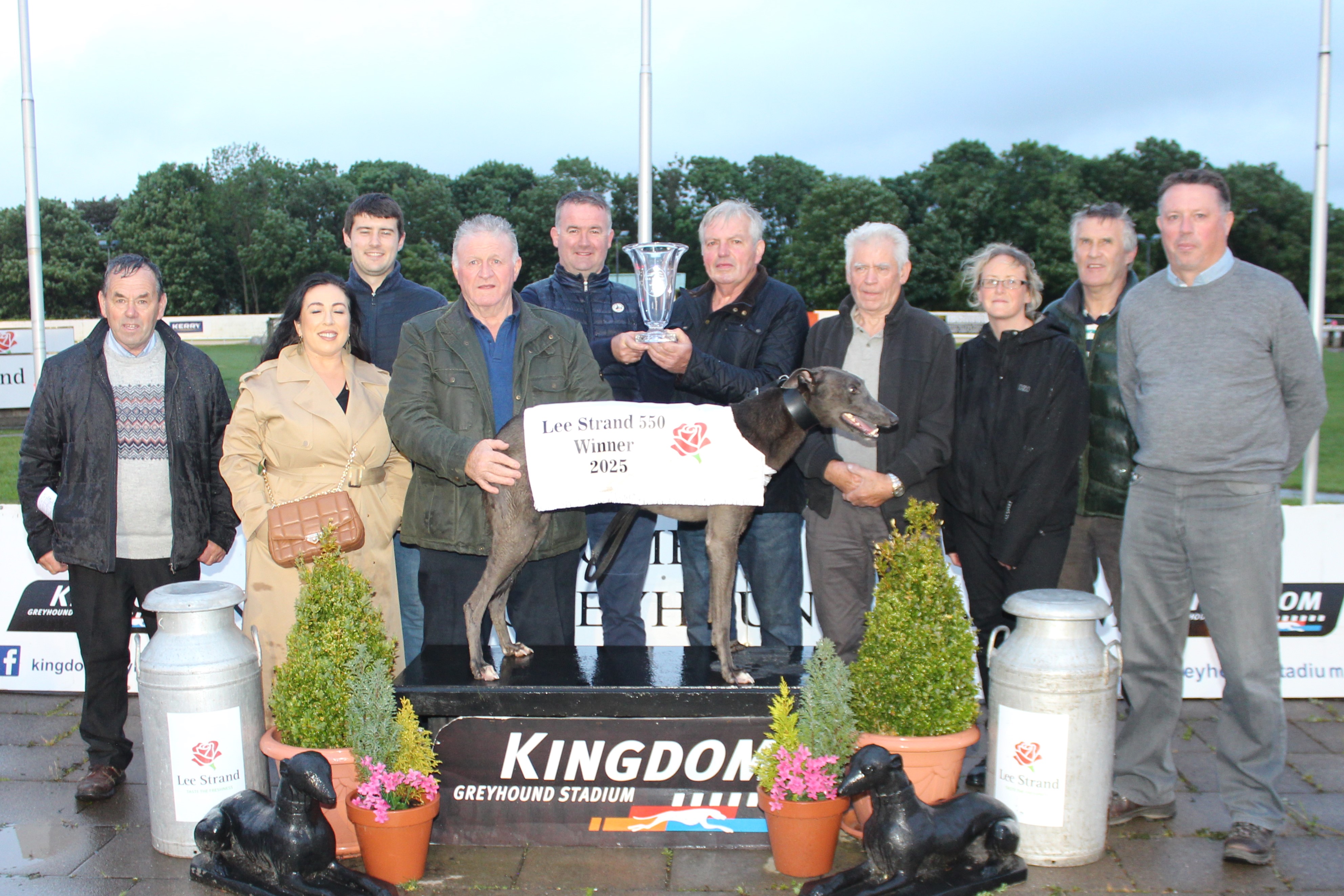 HEADLEYS TRUMP (Coolavanny Hoffa-Mercenary Mary) produced a top class performance to win the feature in the Kingdom on Saturday night, the €10,000 to the winner Lee Stand 550-yard Final.