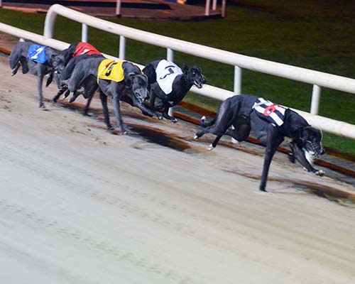 Hawkfield Abbie took the opening heat, showing fine pace to pick up the long-time leader and hot favourite Tribal Syd.
