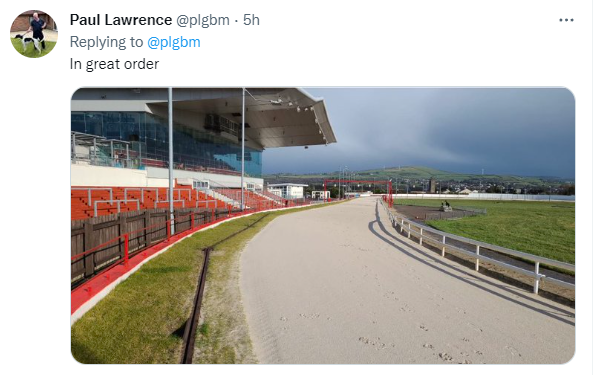 Paul Lawrence, in response to Harry’s tweet, replied with a picture of the home straight and main stand and it’s difficult to spot a blade of grass out of place or a flaw in the paintwork. In truth, the place looks immaculate and it’s a real credit to those involved in the famous venue. Bring on the spring.
