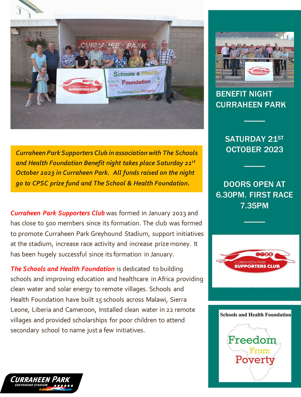 Curraheen Park Supporters Club in association with The Schools and Health Foundation Benefit night takes place Saturday 21st October 2023 in Curraheen Park.