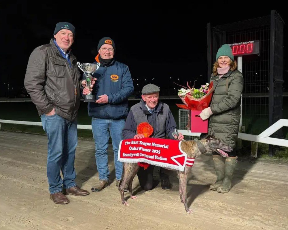 Kindly sponsored by Tony Teague of Omagh, the final of the Bart Leahy Memorial Brandywell Oaks took centre stage at Derry on Monday night, with Champagne Jet producing a masterclass in front-running to seal the eighth victory of her career.