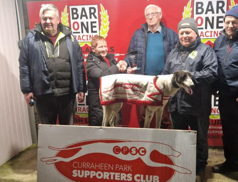 Trained by John Hickey for owner Tadhg O'Loughlin, DOWER MADDIE (Fromposttopillar-Maddieluluver) landed the feature at Curraheen Park on Saturday night, the €1,000 to the winner Colin Ronayne Memorial ON2/ON3 Dual Distance final.