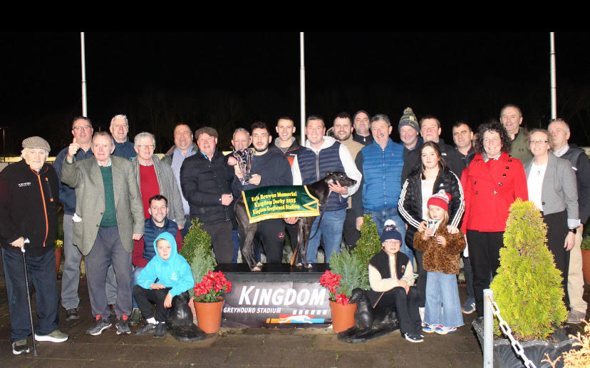 A brilliant second in the recent final of the Irish Greyhound Laurels Final, SOLO AND GO, trained by Liam Dowling for the Kingdoms Palace Syndicate, went one place better when winning the end-of-the-year feature at the Kingdom Greyhound Stadium on Friday night, the €5,000 to the winner Eric Browne Memorial Kingdom Derby.